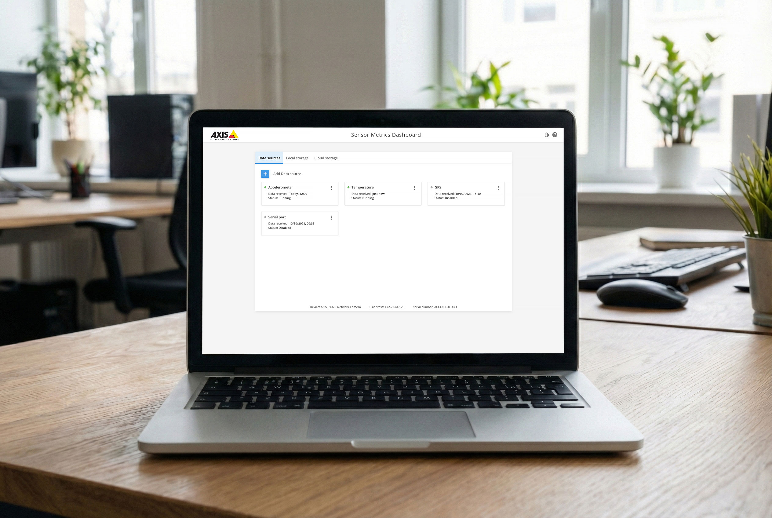 I designed an application that makes it simple to gather data from connected Axis devices. Both onboard sensors and external sensors. Data storage can also be set up and it supports real time data visualizations.