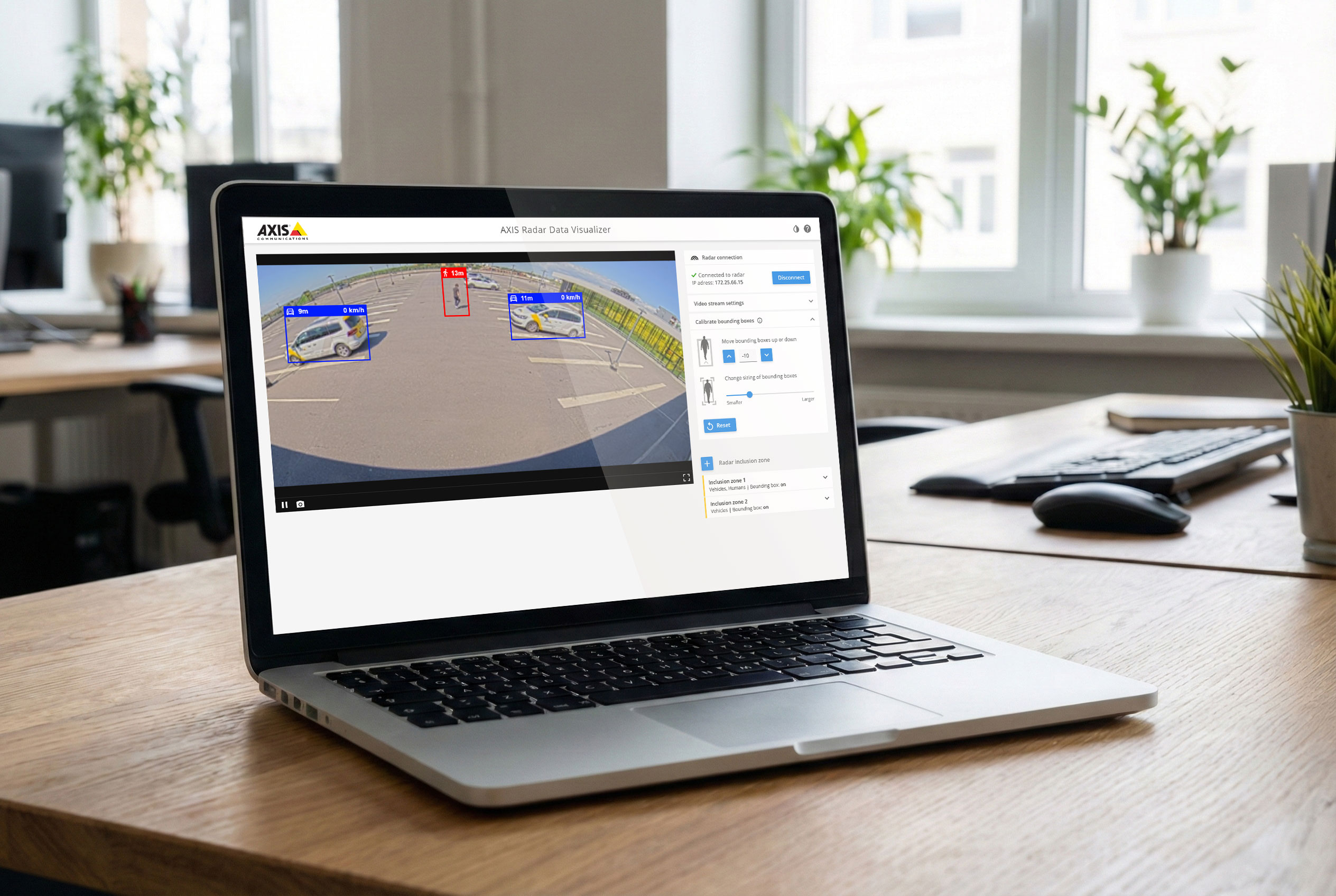 It’s ideal for parking lots, airports, or public areas. Objects can be detected in bad visual conditions thanks to the radar, for example, in low light and heavy snowfall.